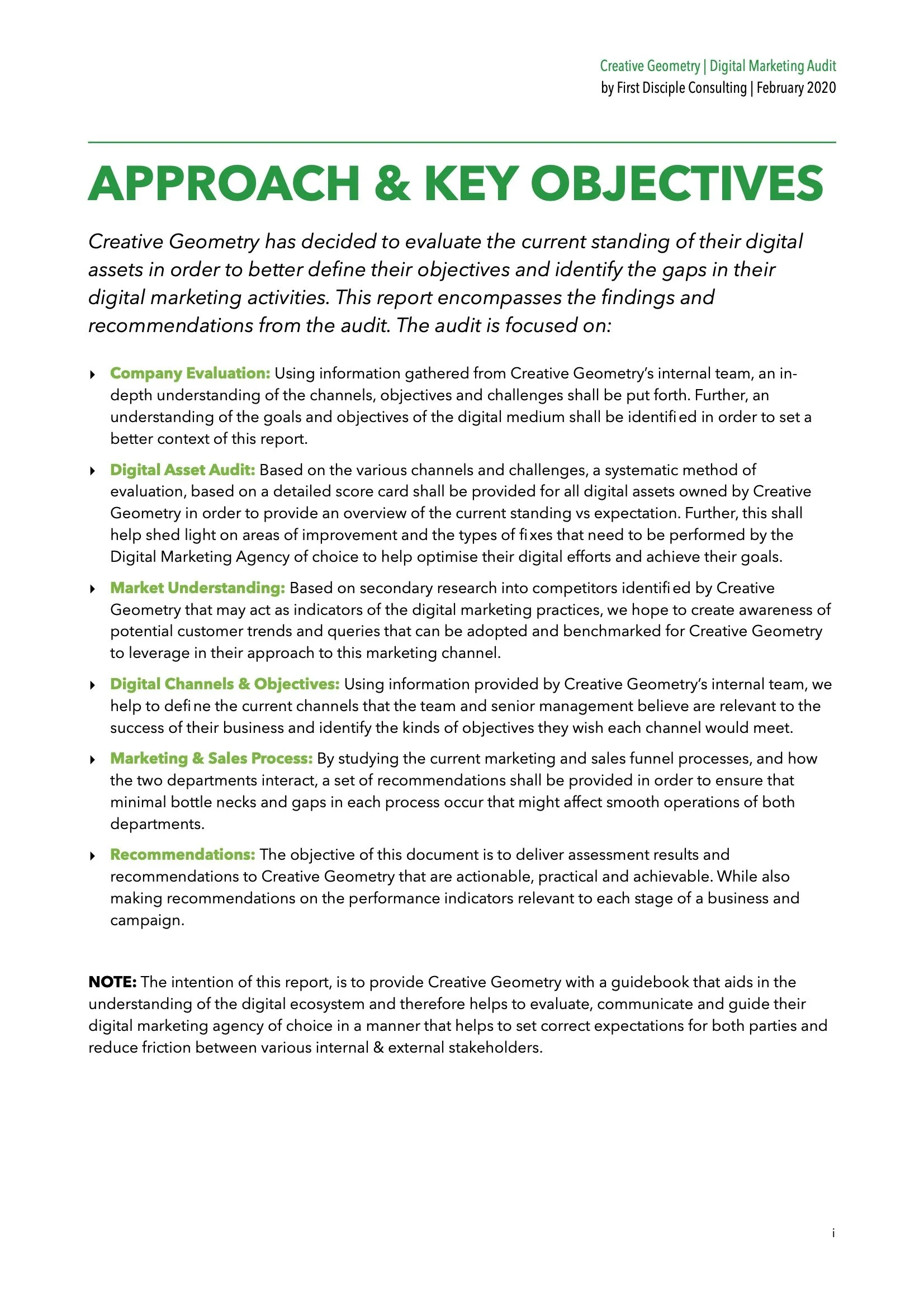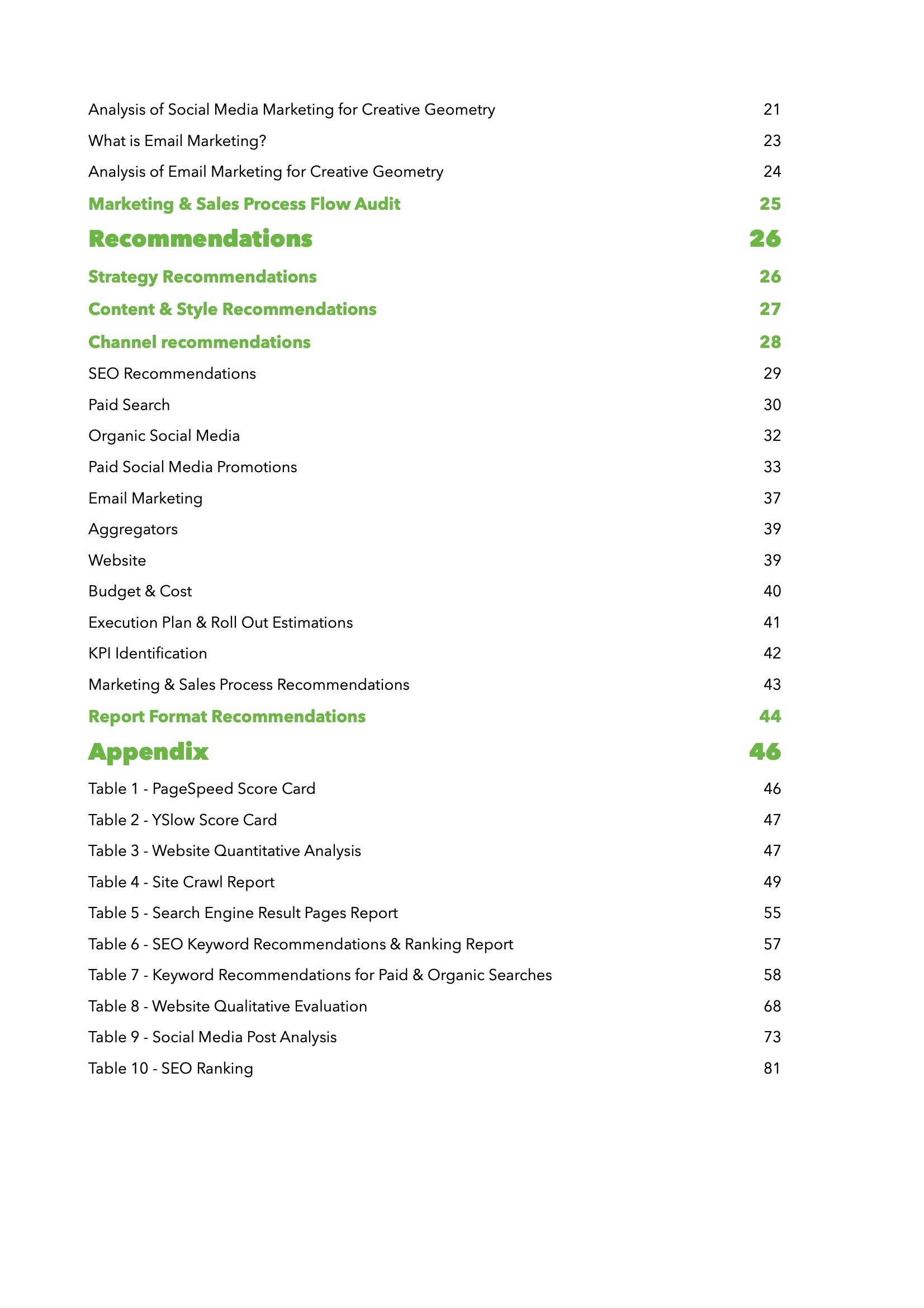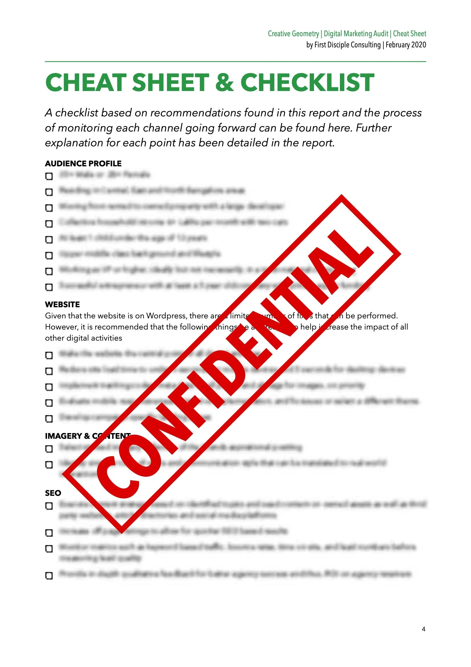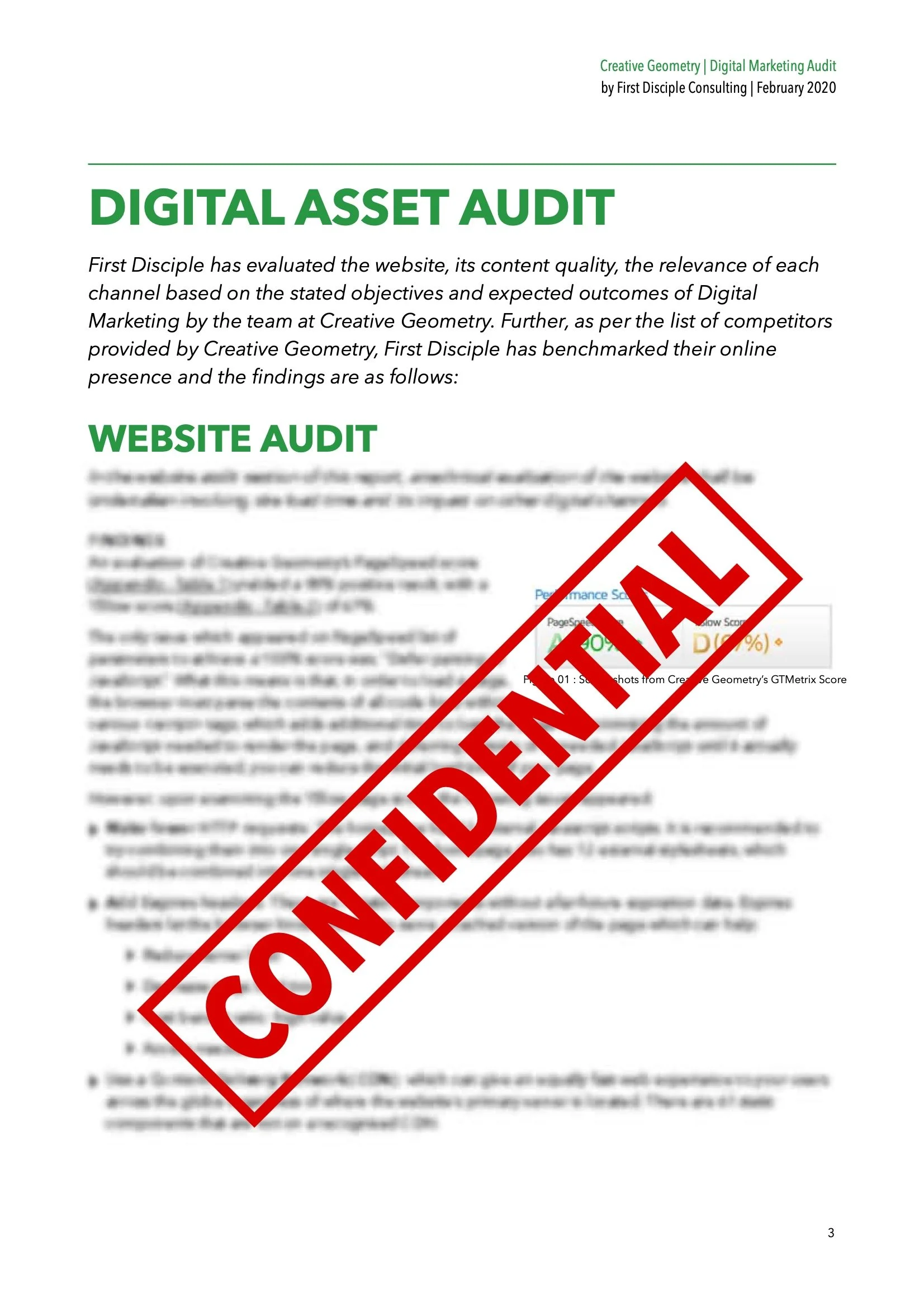 A comprehensive report on a company’s digital performance, blind-spots along based on a checklist of industry standards and benchmarks with recommendations on performance improvements