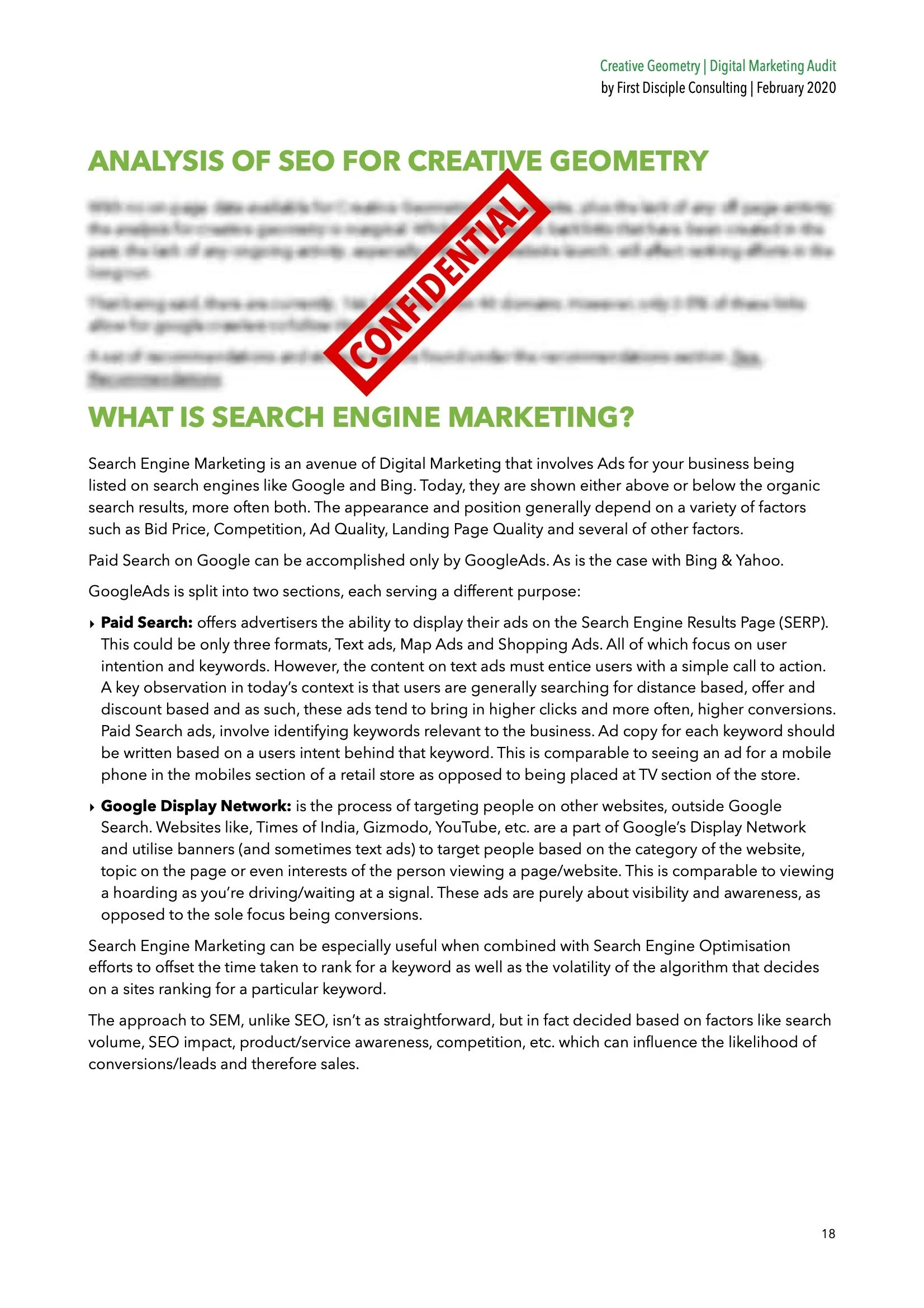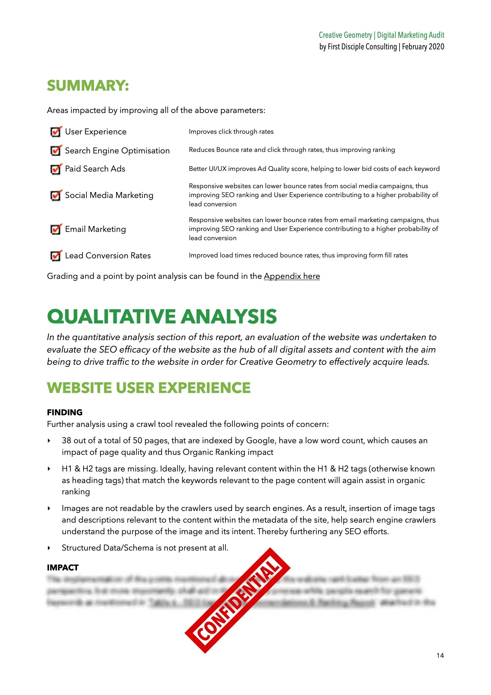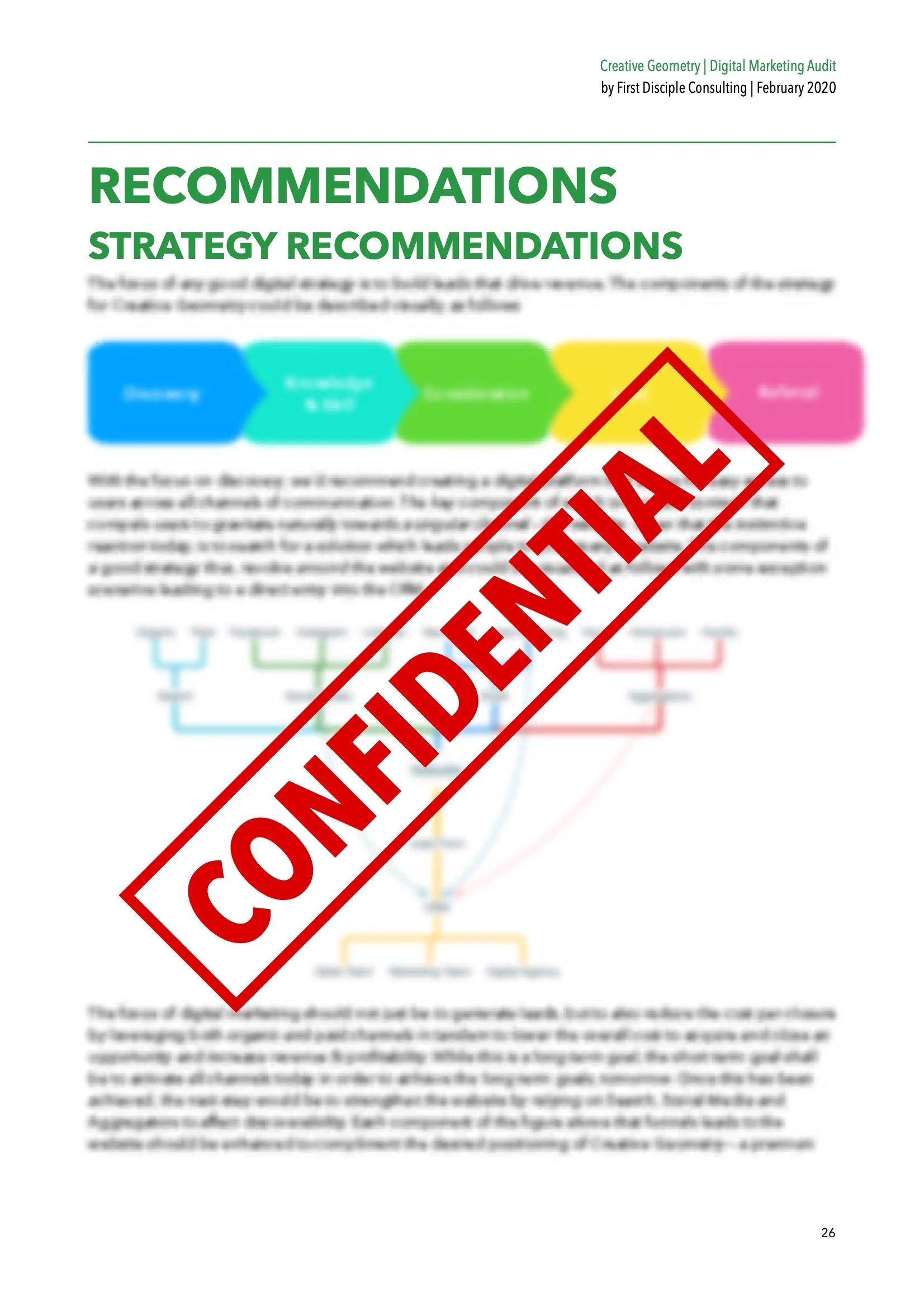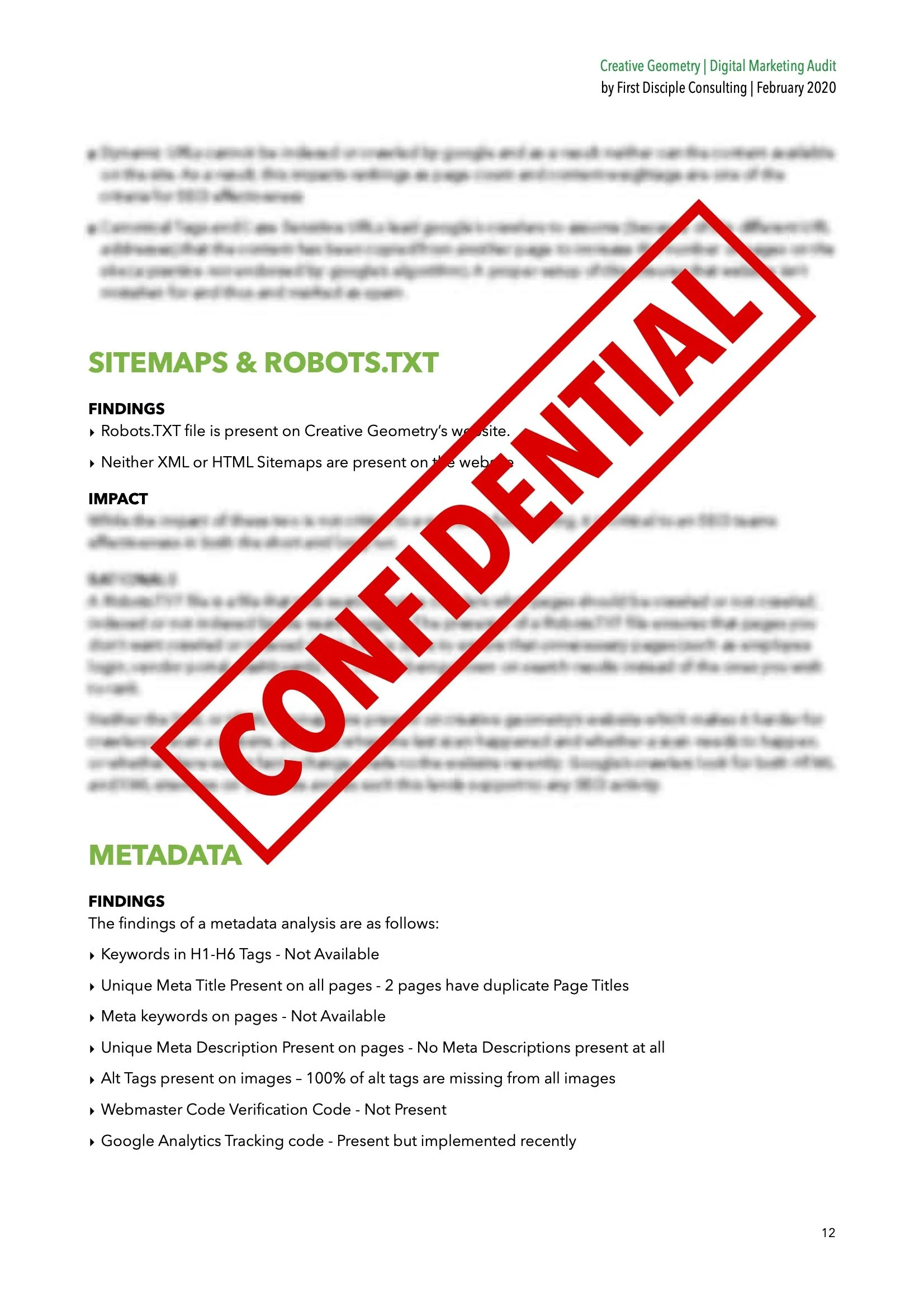 A comprehensive report on a company’s digital performance, blind-spots along based on a checklist of industry standards and benchmarks with recommendations on performance improvements