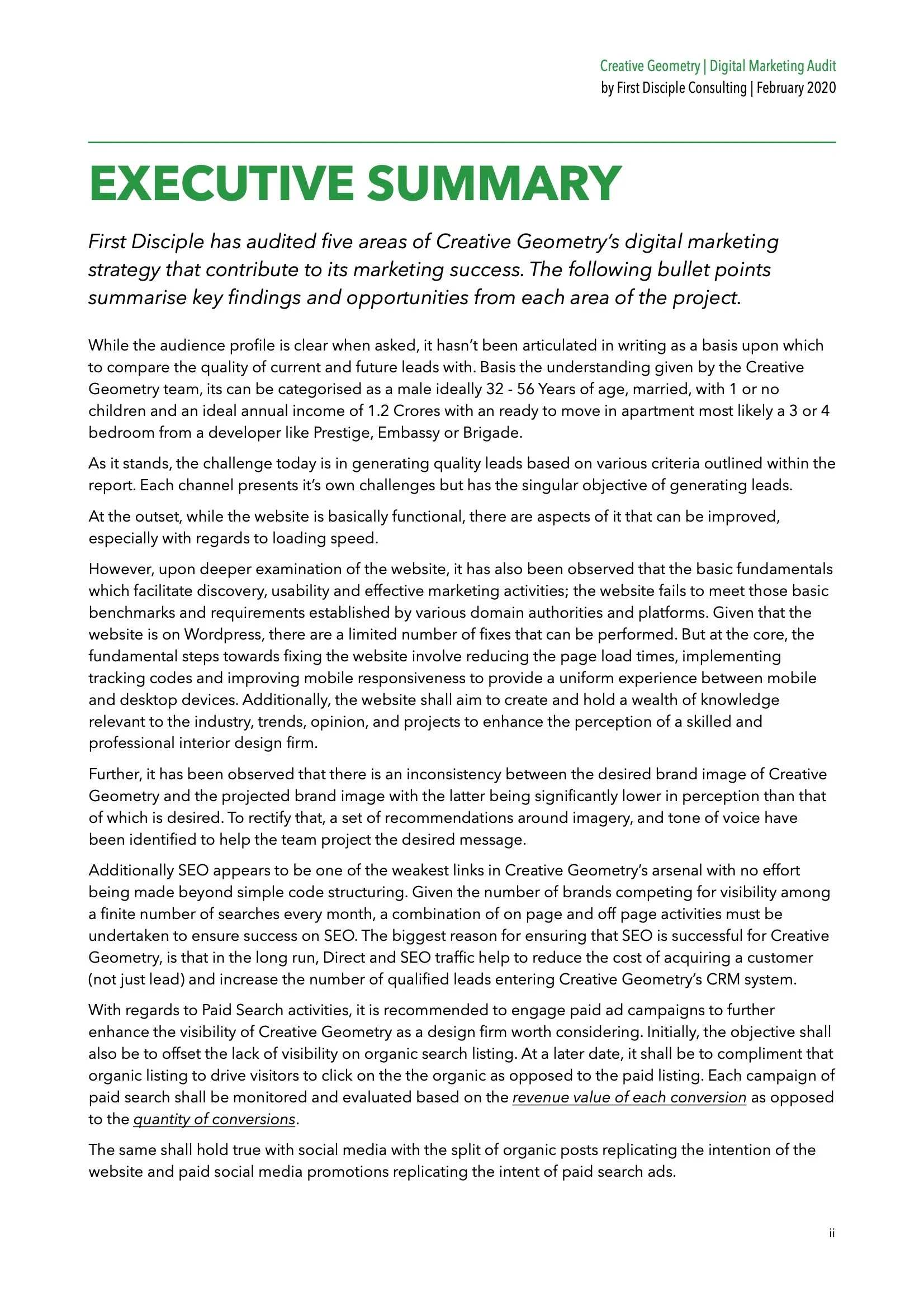 Creation of a digital audit report for an interior design firm based out of Bangalore.